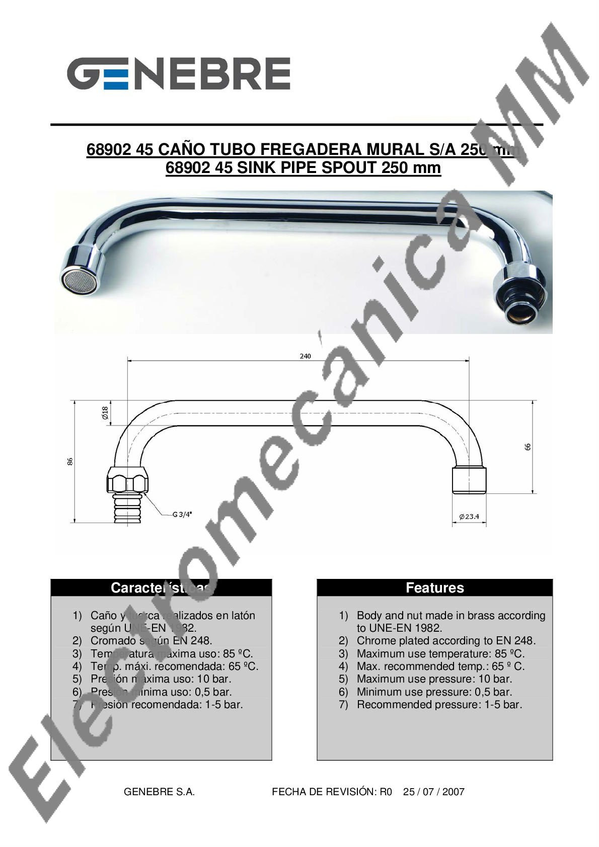 Caño Tubo «U» 24cm – Genebre – Artículo 68902 45