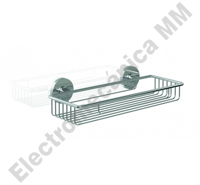 Los florones cubre soportes se fabrican en inyección de zinc de 56,5 mm de diámetro y 1,5 mm de espesor. Se fijan a los soportes a pared mediante tornillería. La cesta de apoyo fabricada en inyección de zinc con acabado cromado se compone de diferentes varillas en forma de “U” unidas a una unión rectangular que le da una superficie total de 300 x