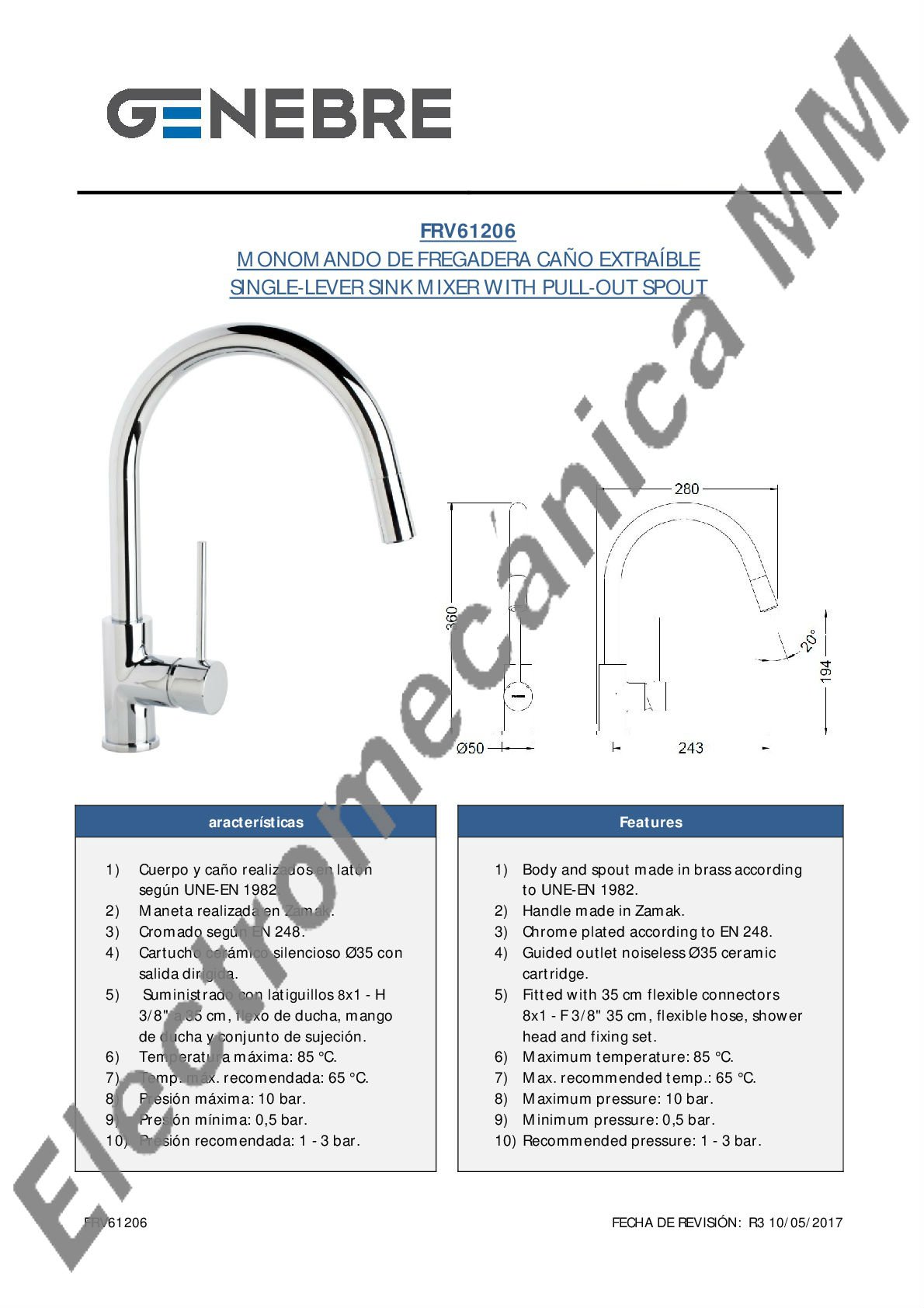 Monocomando Mesada Caño Extensible – Genebre – Artículo RV61206
