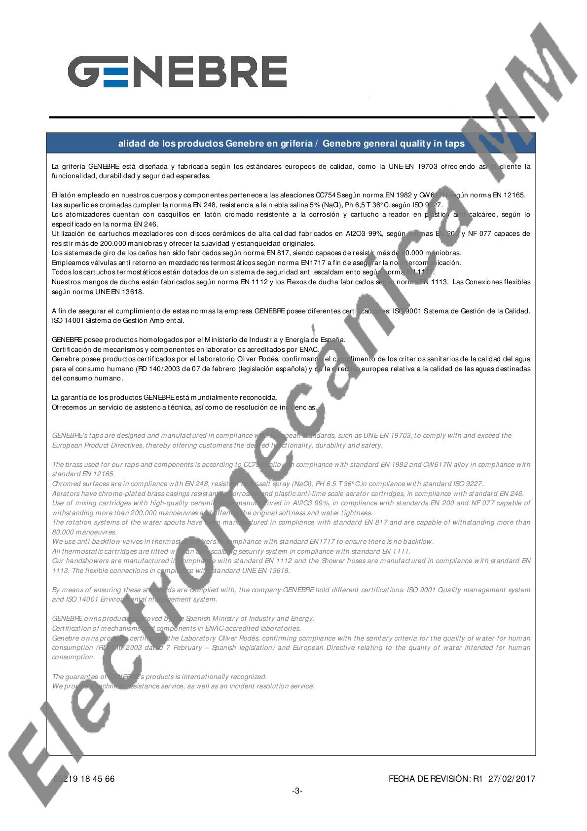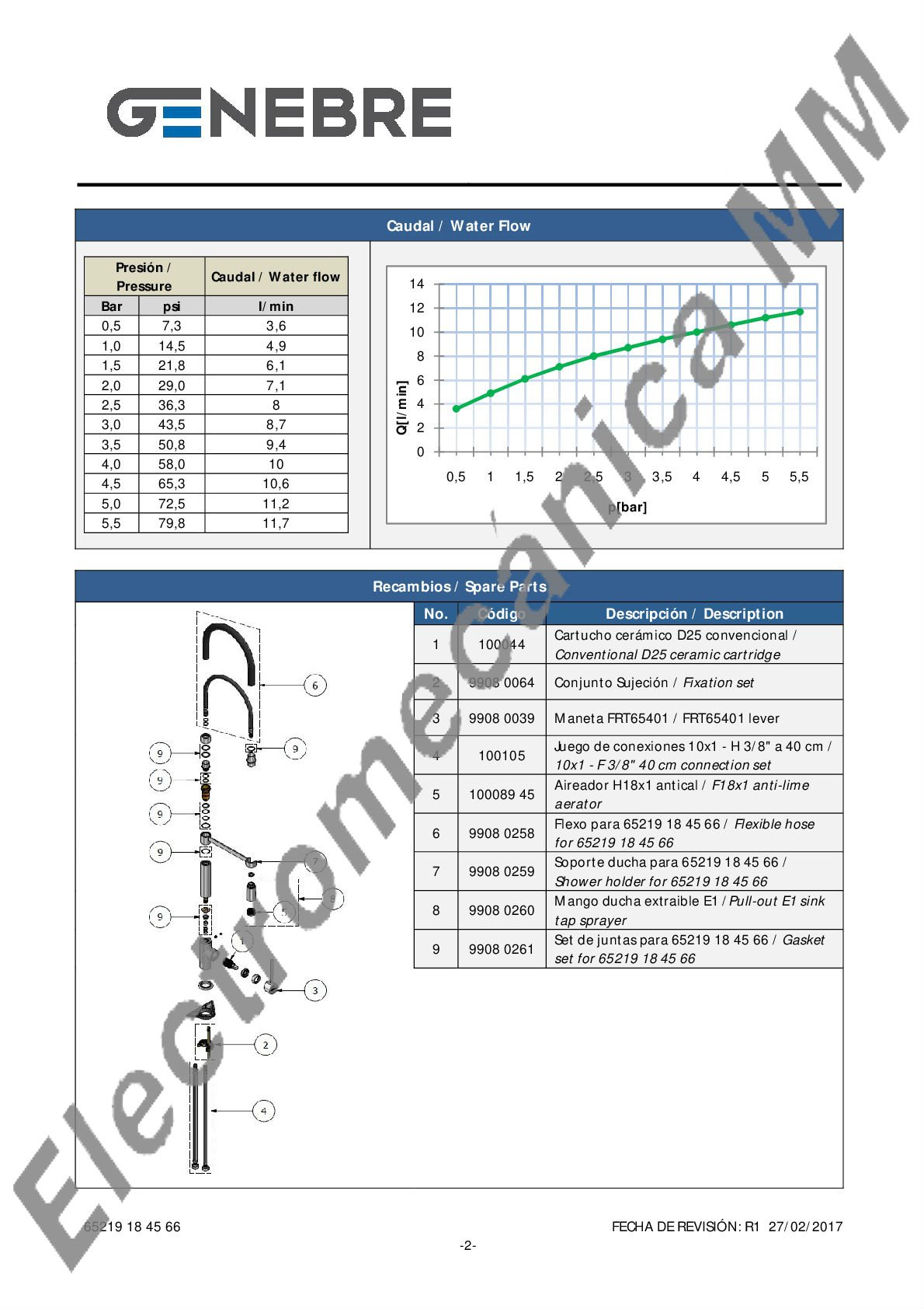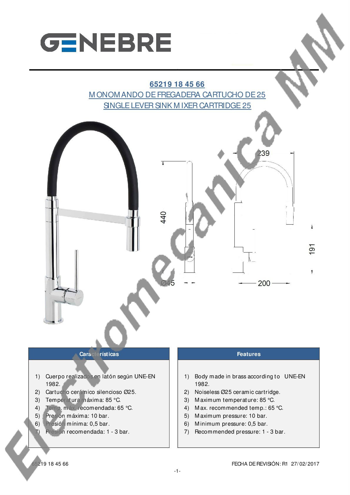 Monocomando Mesada Cartucho 25 Apertura En Frio – Genebre – Artículo 65219 18 45 66