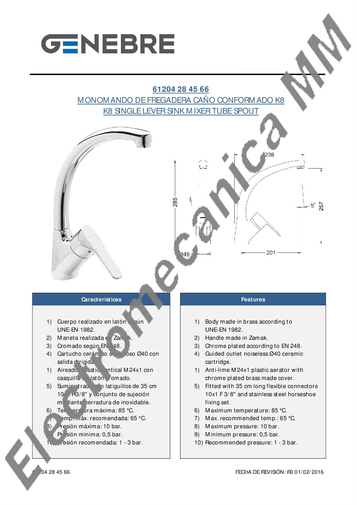 Monocomando Mesada – Genebre – Artículo 61204 28 45 66